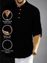 FireFish Men Solid Cotton Blend A-line Kurta (Black)