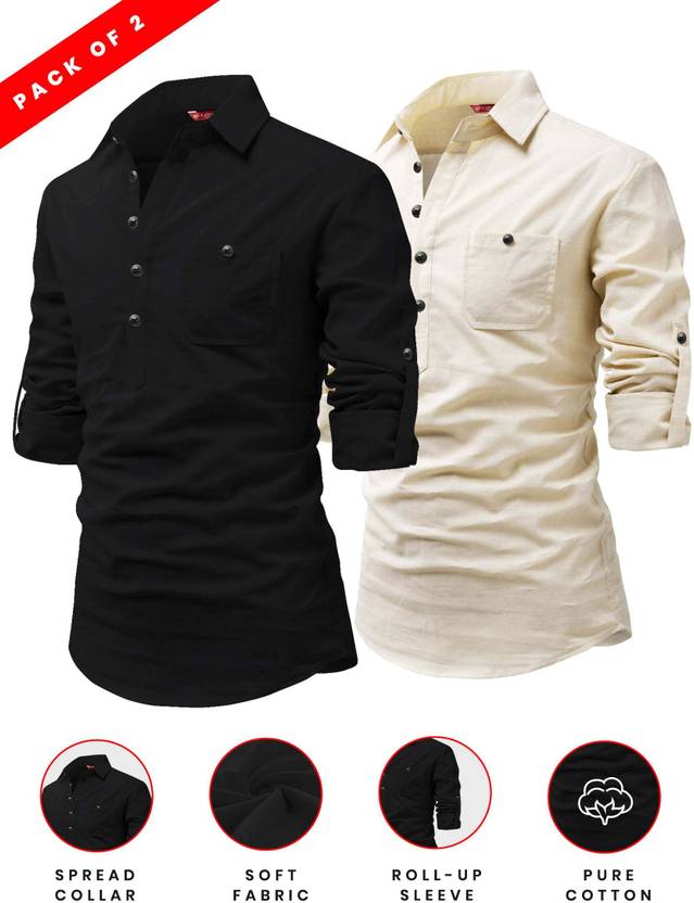 Yugnik Pack of 2 Men Solid Pure Cotton Straight Kurta (Beige)