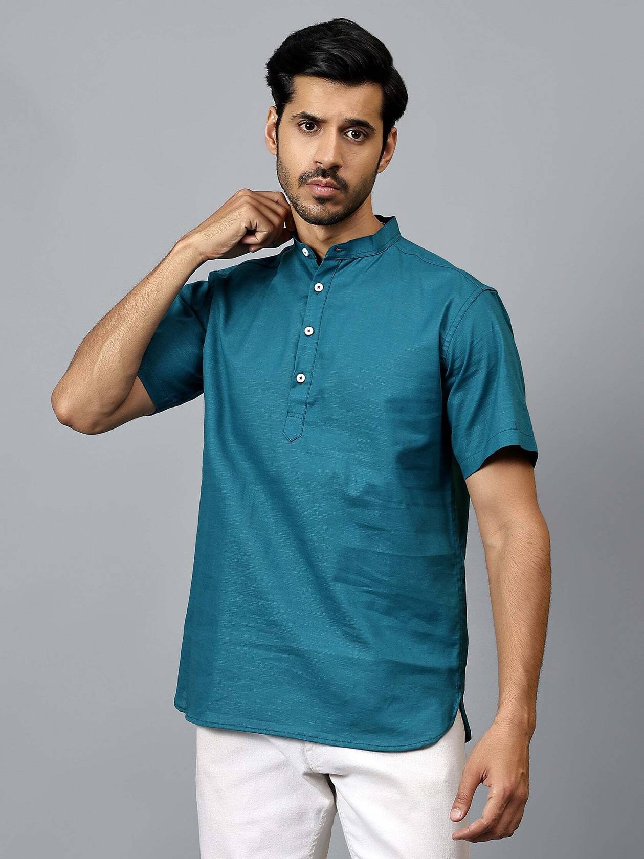 Elevate your style with the Yugnik Men's Half Sleeve Cotton Short Kurta. Suitable for any occasion, festival, or party celebration, this versatile kurta is a wardrobe essential. Product Details: 👕 Gender: Men 🔹 Pattern: Solid 🌟 Design Type: Plain 🎨 Available Colors: Beige, Black, Dark Teal, Golden, Green, Light Green, Grey, Maroon, Navy Blue, Orange, Peach, Pista, Red, Royal Blue, Sky Blue, Turquoise, White, Yellow 🔒 Closure: Button 👔 Sleeve: Full Sleeve ↔️ Waist Rise: Mid-Rise 👘 Collar: Mandarin/Chinese ➰ Hemline: Curved 🌿 Fabric: Cotton 📏 Product Length: Short 📦 Pack of: 1 🧼 Material & Care: Cotton Fabric, Hand and Machine Wash How to Style: Pair this half sleeve short kurta with chinos for a classic look. For a festive touch, add a vibrant stole or dupatta. Complete the ensemble with mojaris or juttis, and accessorize with a sleek bracelet or watch. Whether you’re attending a festival or a casual gathering, this kurta ensures you stand out with elegance and comfort.