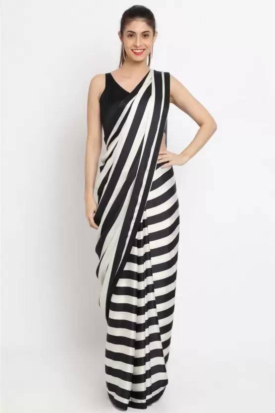 Printed Bollywood Crepe Saree (White, Black)