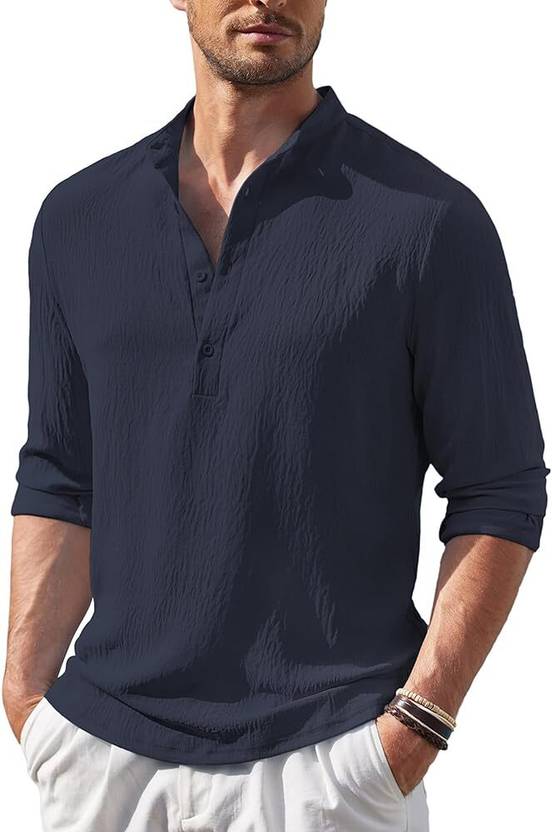 ZARTHA Men Solid Straight Kurta (Dark Blue)