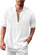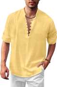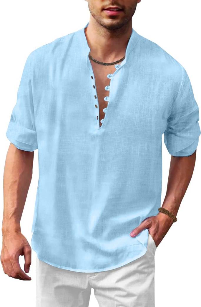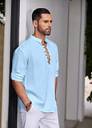 Men's Casual Solid Henley Shirt with Mandarin Collar