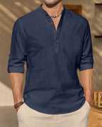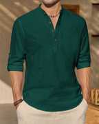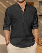 Men's Ethnic Style Casual Kurta Shirt with Mandarin Collar and Roll-Up Sleeves