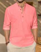 Men's Casual Solid Henley Shirt with Mandarin Collar