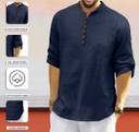 Men’s Casual Linen Blend Kurta Shirt with Wooden Buttons & Mandarin Collar
