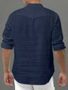 Men's Casual Solid Henley Shirt with Mandarin Collar