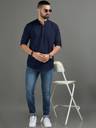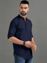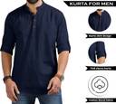 zbio Men Solid Cotton Blend Straight Kurta (Dark Blue)