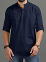Men's Casual Solid Henley Shirt with Mandarin Collar