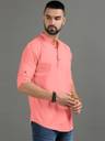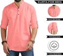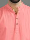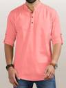 Solid Casual Short Kurta for Men with Button Placket & Mandarin Collar