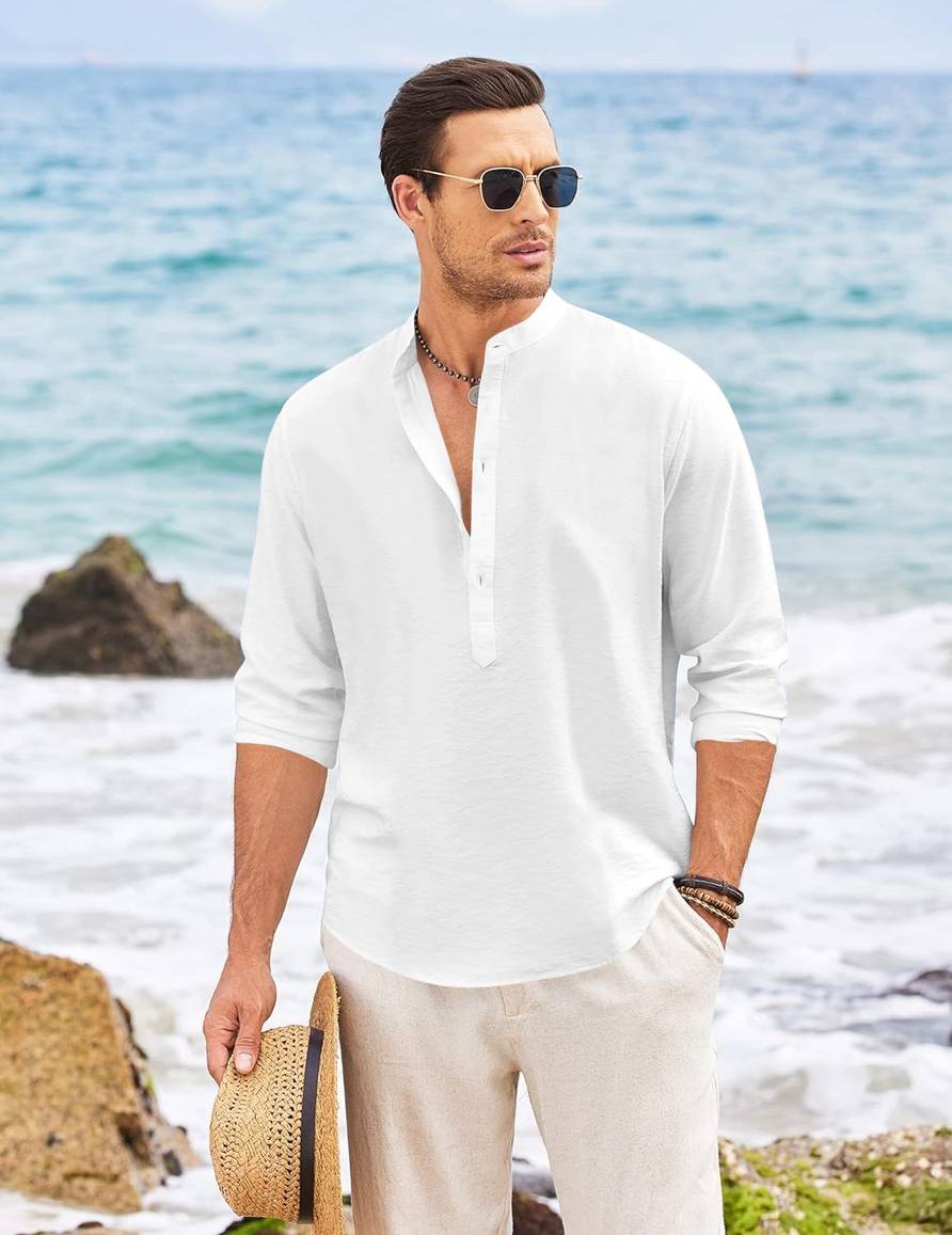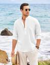 Men's Casual Solid Henley Shirt with Mandarin Collar