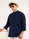 Men's Casual Solid Henley Shirt with Mandarin Collar