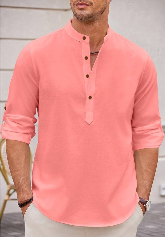 Men's Casual Cotton Blend Kurta Shirt with Roll-Up Sleeves Ethnic & Modern Wear