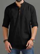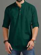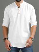 Men's Casual Solid Henley Shirt with Mandarin Collar