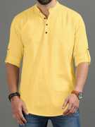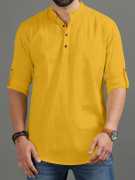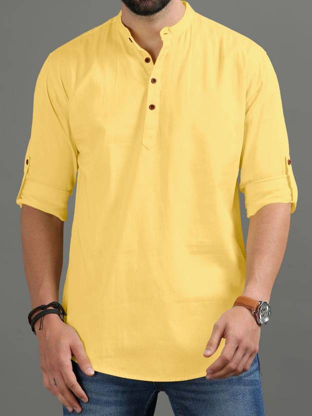 Solid Casual Short Kurta for Men with Button Placket & Mandarin Collar