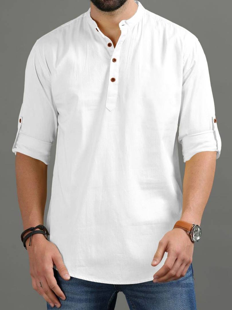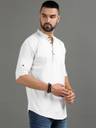 Solid Casual Short Kurta for Men with Button Placket & Mandarin Collar