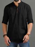 Men's Casual Solid Henley Shirt with Mandarin Collar