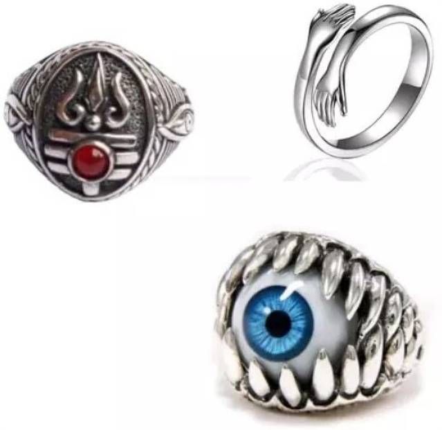 Fashion 3Combo Unisex Ring Silver Hug Hand,Evil Eye and Mahadev Trishul Ring