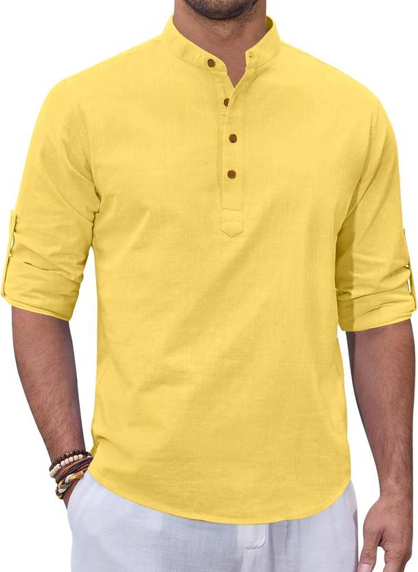 ZIRPIX Men Solid Straight Kurta (Yellow)