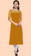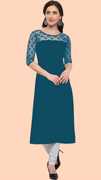 Febric : Crepe Printed : Solid Sleeve Style : Regular Sleeve Sleeve Length : Three Quarter Sleeve Neck : Round Neck Length : Caif Length Quality Product kurti for women