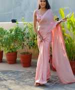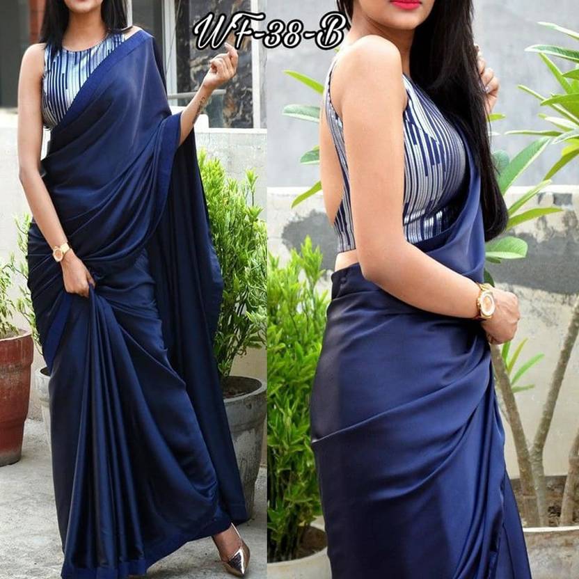 ZINLORIZ सॉलिड/प्लेन बॉलीवुड साटन साड़ी (नीला)