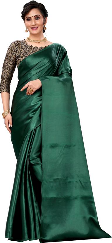 ZINLORIZ सॉलिड/प्लेन बॉलीवुड साटन साड़ी (हरा)