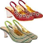 Dapka Work On Fabric Complte Hand Made Sandals With The Highest Quality Material Used , For Bride Or Other Partywear Users