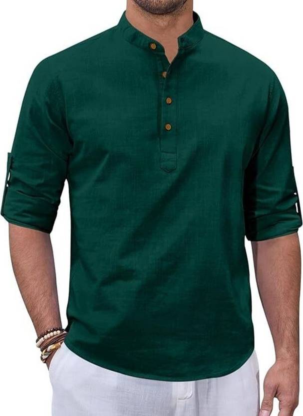 GUYS HUBB Men Solid Straight Kurta (Green)