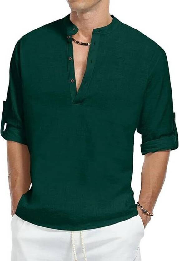 Men Solid Cotton Blend Straight Kurta (Green)
