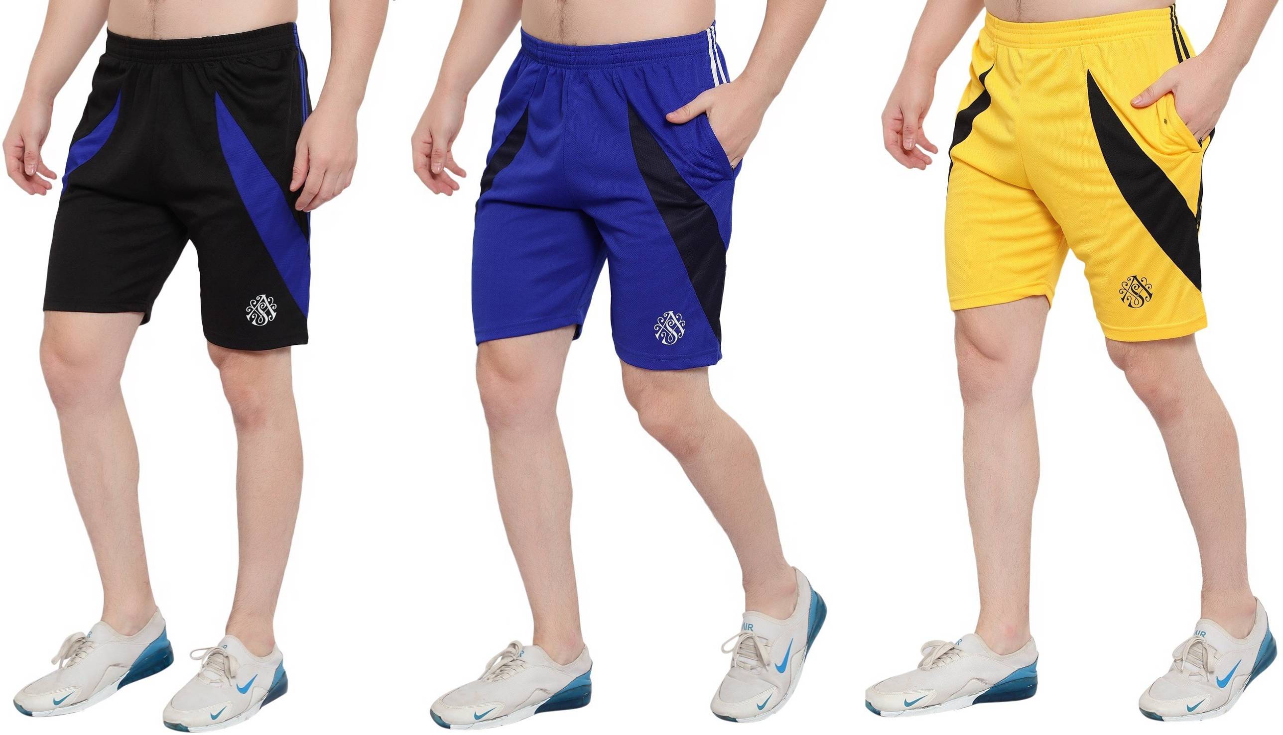 Zonecart Solid Men Black, Blue, Yellow Regular Shorts