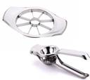 APPLE CUTTER AND LEMON PRESS ABOUT APPLE CUTTER Many fruit and vegetable cutters are considered "all-purpose" because they can process a variety of fruits and vegetables equally effectively. Others are specially designed to address more unique challenges like processing larger products such as heads of lettuce, or longer, narrower produce like watermelons, apple, green onions or cucumbers. Practical Design The shape of this apple corer handle conforms to the ergonomic design, and this apple cutter handle is made of new materials, which is light and strong. Easy to Use This apple cutter slicer corer has a simple structure and sharp blades, you can easily cut the fruit into 8 pieces with just one press. ABOUT LEMON PRESS Easy to Clean : This lemon squeezer is easy to clean, the lemon juice orange squeezer can be put into a dishwasher, each time you squeeze the lemon, orange or lime juice, then you need to clean the lemon squeezer. Suitable For: Vegetables, Fruits, Lemon, CitrusProduct Features Get every last drop but no seeds