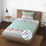 HIDECOR Polycotton Single Fitted (Elastic) 250 TC Printed Bedsheet (Pack of 1, Green)