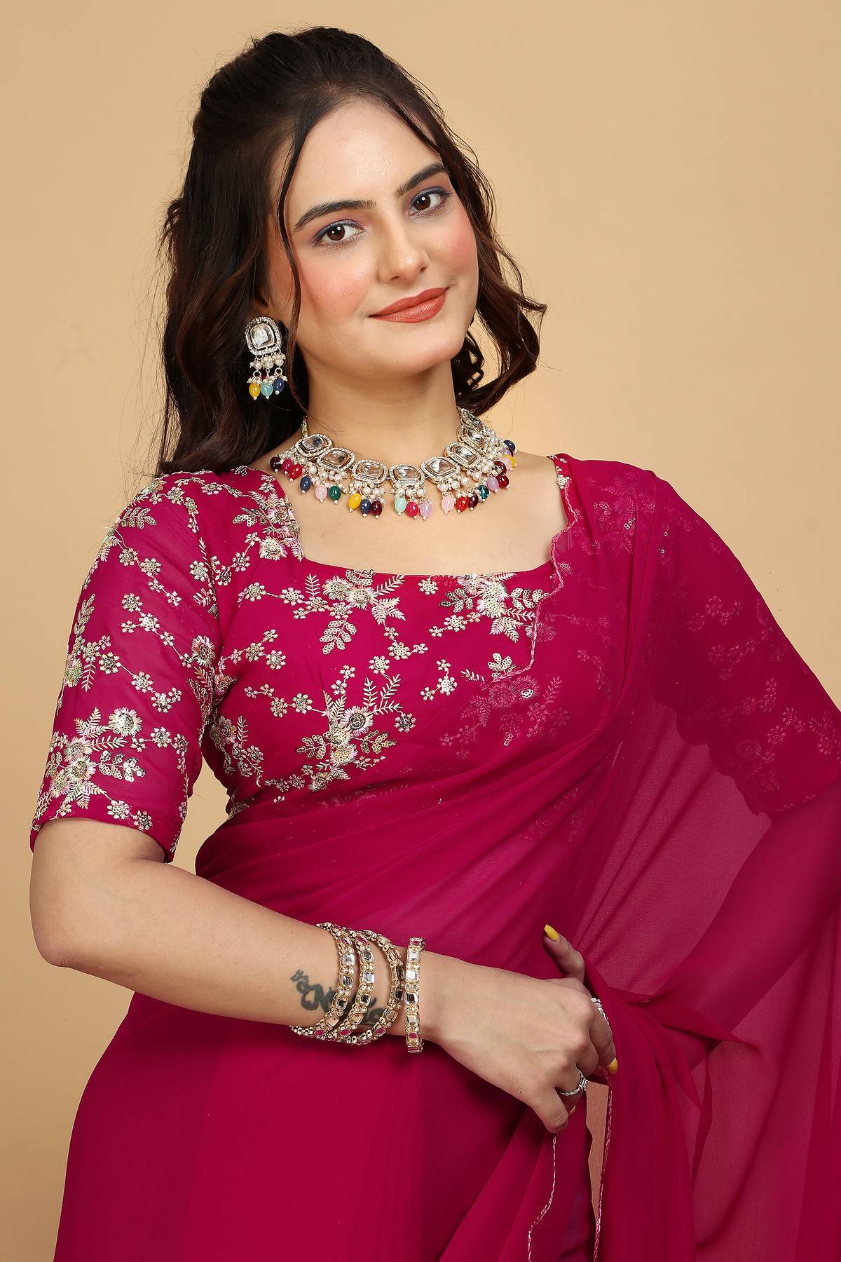 Embroidered Bollywood Georgette Saree (Pink)