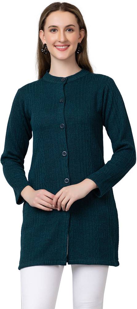 hifzaa Solid Round Neck Casual Women Blue Sweater