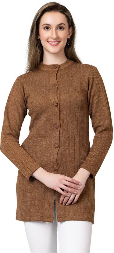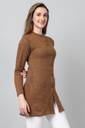 hifzaa Solid Round Neck Casual Women Brown Sweater