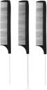 Salon Tail Comb with Steel Pin & Fine Tooth Lightweight Rat Tail Comb Black, 3pc
