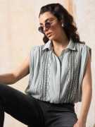 Women Relaxed Fit Fit Embroidered Spread Collar Casual Shirt