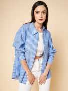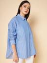 High Star- by BRND.ME The women's striped oversized casual shirt is a chic and comfortable piece of clothing. It features a spread collar and long regular sleeves, providing a classic and timeless look. The shirt is made from high-quality fabric with a striped pattern, adding a touch of sophistication and style. The oversized fit offers a modern and trendy look, providing ample room for movement and ensuring maximum comfort. This shirt is perfect for a casual day out or can be dressed up for a more formal occasion. With its stylish design and comfortable fit, it's a versatile addition to any wardrobe.