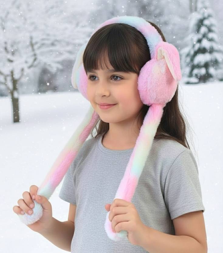 Cute jumping rabbit ear with chuchu sound earmuffs for kids girls boys