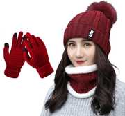 3-in-1 Women beanie caps scarf and touchscreen gloves are made of soft-spun Fur wool and fleece. Beanie: the slouchy beanie completely covers your ears without having to yank it down. all of the time, warm enough for outside and comfortable enough to leave it on inside. GLOVES: this gloves with touch screen fingers on the Thumb and Index Finger. Gloves make your hands warm while you're enjoying your time with your favorite touch screen device in cold weather. GLOVES: antiskid function could keep your phone not slide out of hands, also could be used for drive cars in the cold weather days. 3-in-1 set winter beanie cap scarf and gloves set, stay warm all the time, great for outdoor activities and daily warmer. Best gift for your parents, friends, and yourself when the cold weather coming.