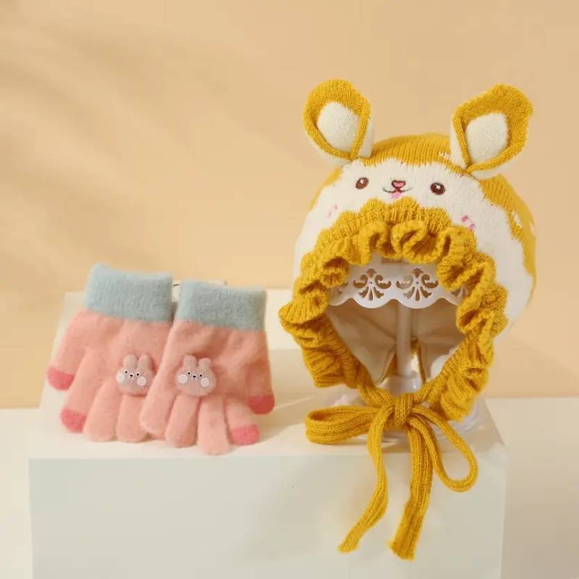 Suitable for ( 6 month to 3 Years ) : Pull On Closure, baby Warm Gloves: Knit Gloves, Comfortable To Wear And Soft To , The Rib-knit Cuff Works Great To Hands Against Cold, Makes Children's Hands Stay Warm, With Great Flexibility And Extensibility In Process Of The Lateral Stretching, Easy To Wear And Take Off. FIT FOR : We use double layer stretchable materials so that the Beanie can adapt to various head shapes and size, whether small head or big head, ( 6 months to 3 years old toddler kids. One size fits most for all baby boys and baby girls head ) Flexible Rope To Tie It Firmly Design: Fix the cap and stop falling off. Soft and Cozy: Crafted from soft, high-quality double layer knit material, this baby cap offers ultimate comfort for your baby's delicate skin, ensuring they stay snug and warm in colder weather. Cute bear Design: The bear design on this caps brings a touch of whimsy to your baby's outfit, making it ideal for holiday photoshoots or everyday wear. Winter Warmth: With its knitted texture and thick material, this winter baby caps provides excellent insulation, keeping your baby's head and ears warm during chilly winter days. Wash Care: Hand Wash only, Attention : Please note that slight color difference should be acceptable due to the light and screen.