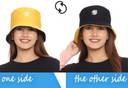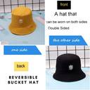 Highever Unisex Daisy flower Embroidered foldable cotton Reversible Bucket Hat beach hat (Mustard Yellow, Black, Pack of 1)