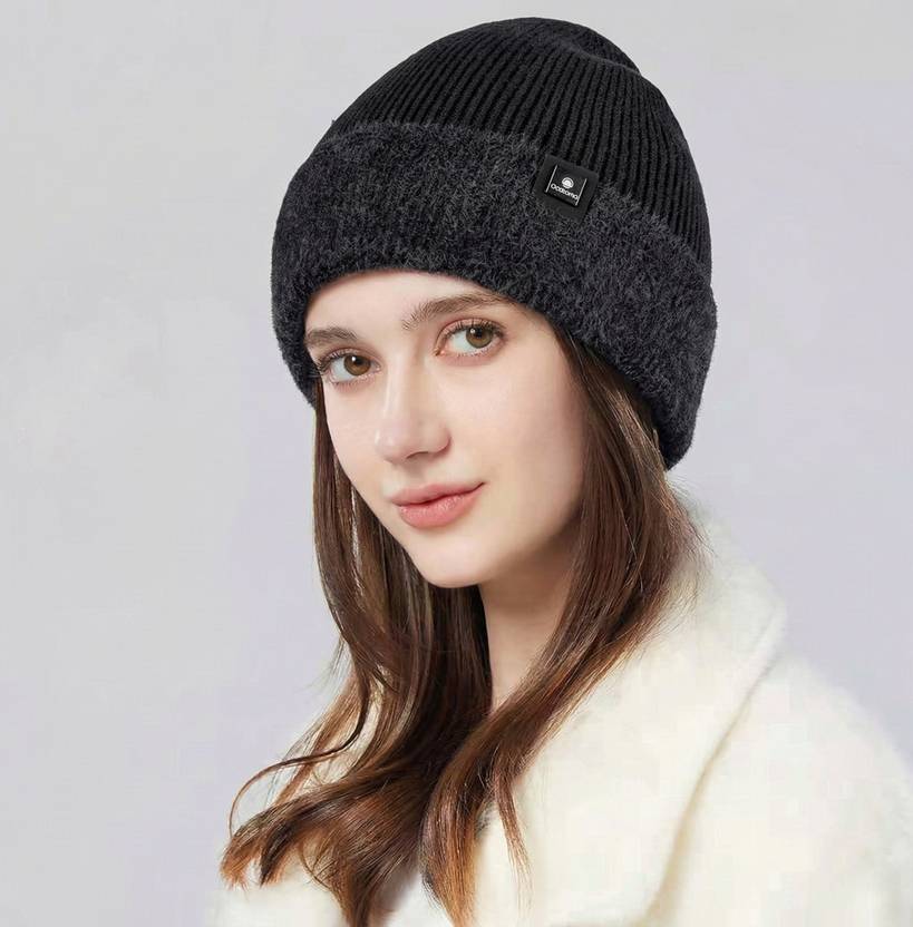 winter cap for women - Stay cozy and stylish in the cold weather with this korean style winter beanie. This beanie features a unique dual-texture design: the crown is crafted from a classic ribbed knit for flexibility and fit, while the folded cuff showcases a plush, fuzzy texture that adds a touch of modern style and extra warmth around the ears. The interior reveals a standout feature- a thick, velvety soft fleece lining designed for maximum thermal retention, ensuring you stay warm even in freezing temperatures. Designed for a snug yet flexible fit, it comfortably adapts to most head sizes without feeling tight. The minimal logo patch enhances its sleek appearance, making it suitable for casual outings, travel, outdoor activities, or everyday winter use. Please note that a slight color difference should be acceptable due to the light and screen.