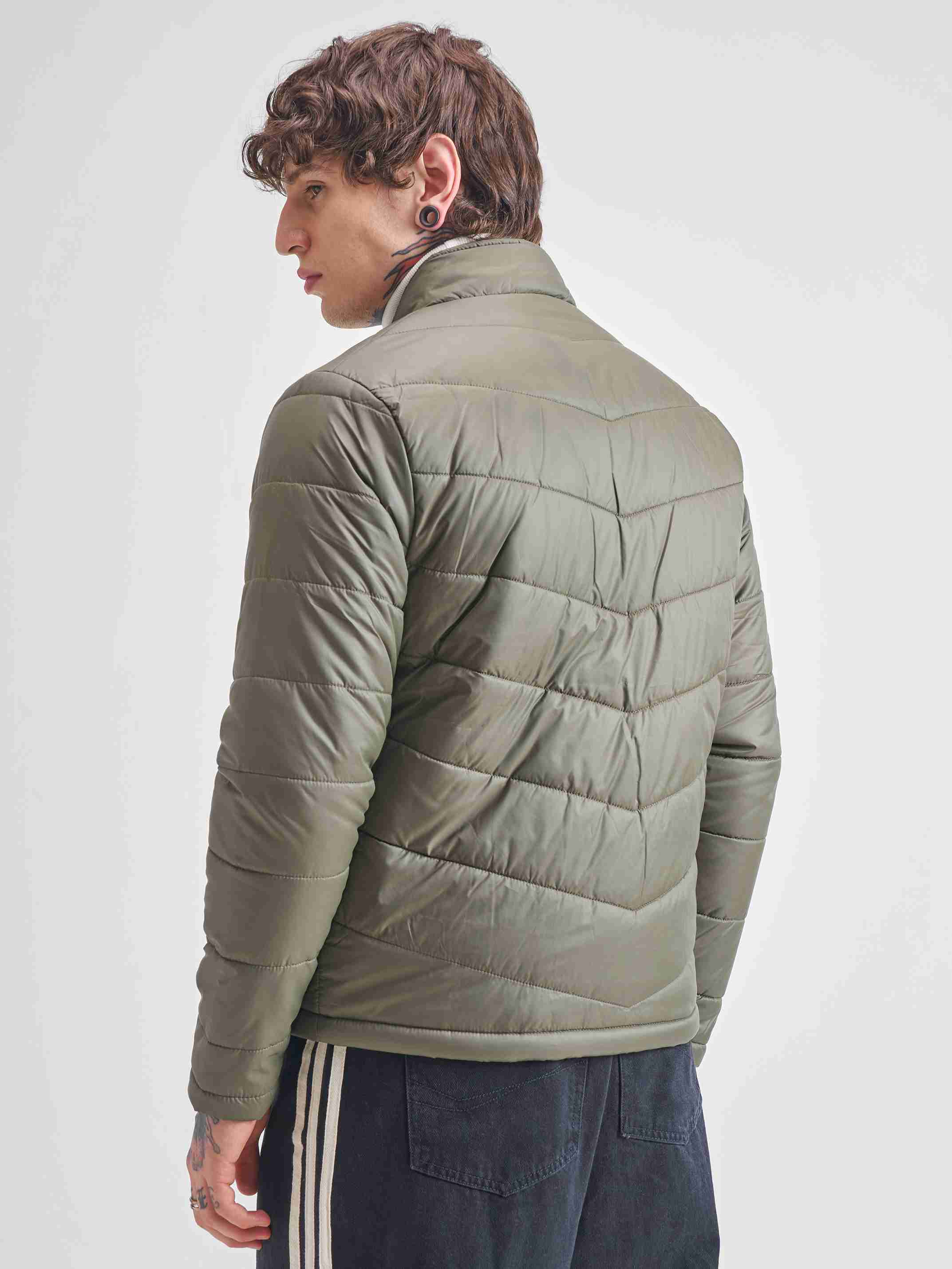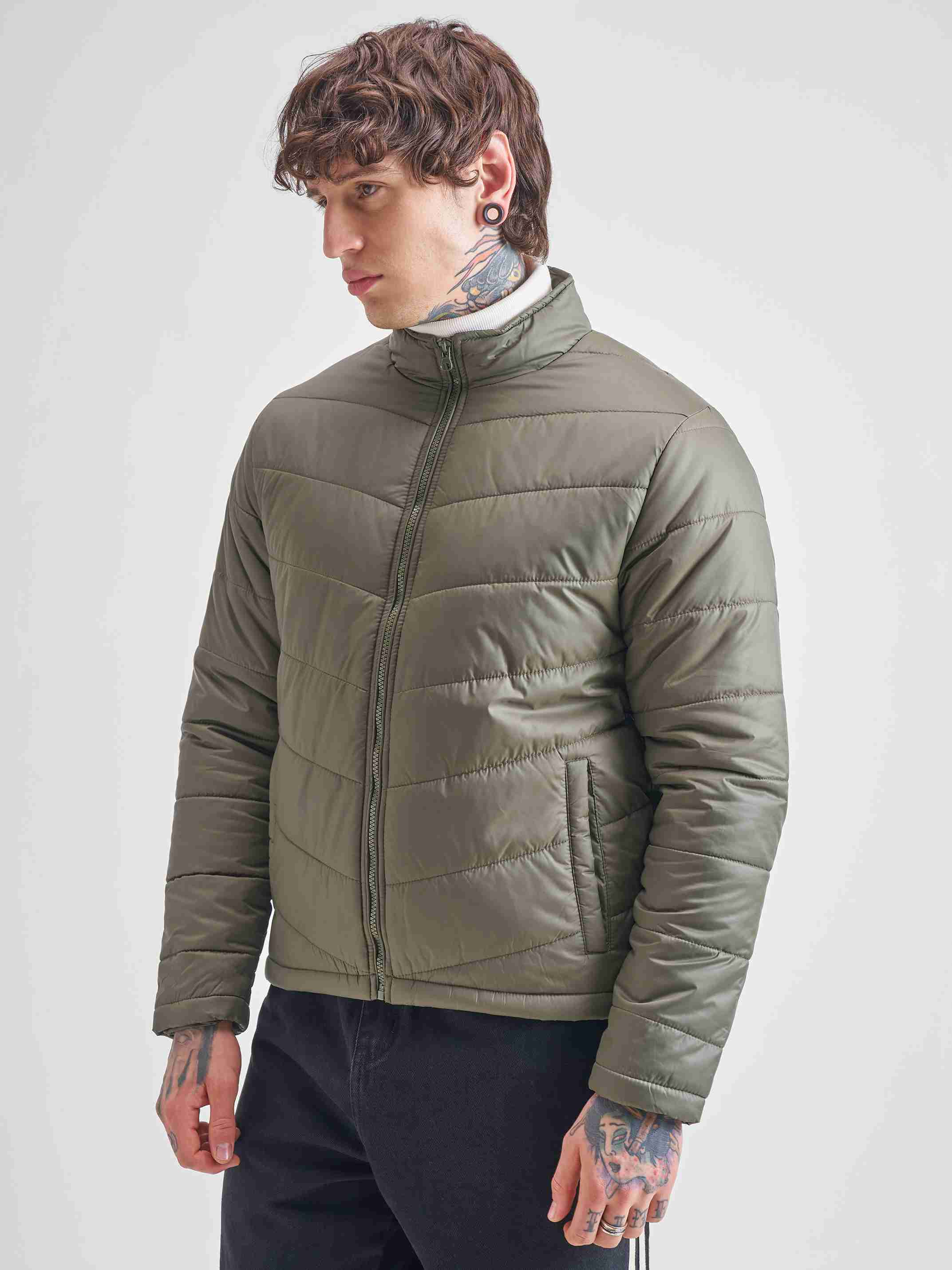 Men Solid Puffer Jacket