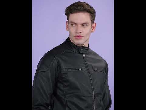 Men Solid Leather Jacket