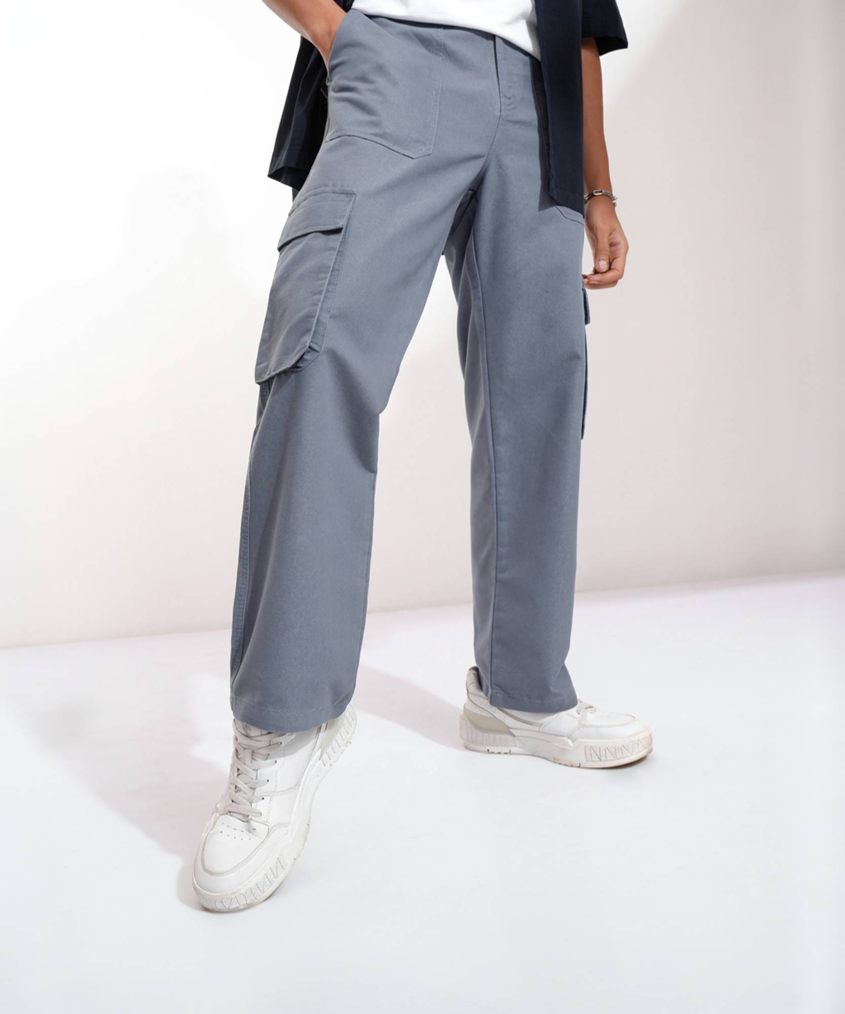 HIGHLANDER Men Grey Cargos Relaxed Fit Trousers