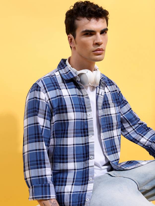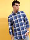 HIGHLANDER Men Checkered Casual Blue Shirt