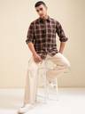 HIGHLANDER Men Checkered Casual Brown Shirt