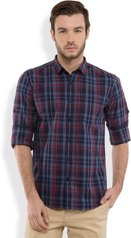 HIGHLANDER Men Checkered Casual Dark Blue, Light Blue Shirt