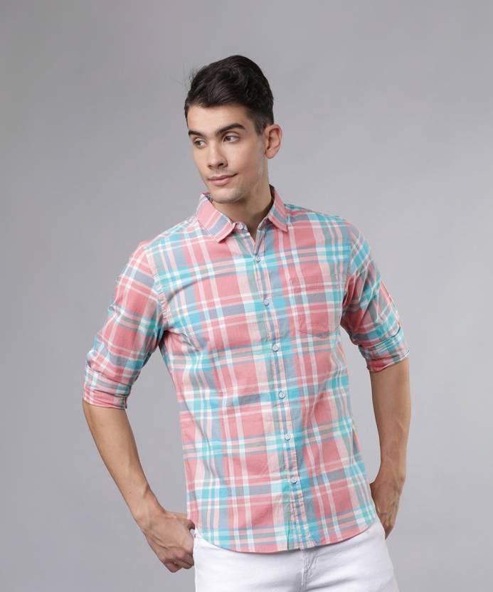 HIGHLANDER Men Checkered Casual Light Blue, White, Pink Shirt