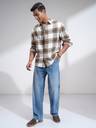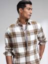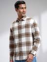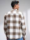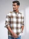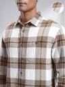 Highlander Men Off White Mustard Flannel Oxford Textured Checked Relkaxed Overshirt